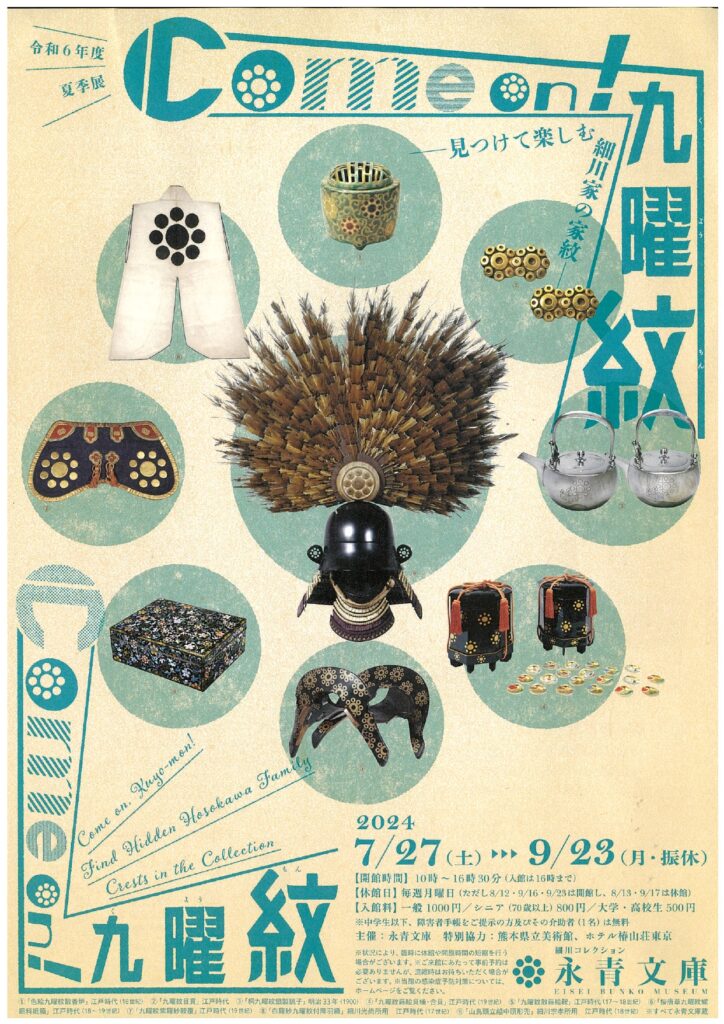 細川家に古くから伝わり、大変歴史ある家紋「九曜紋」をこのページをご覧いただいている皆様にもぜひ、この機会にみていただければと存じます。